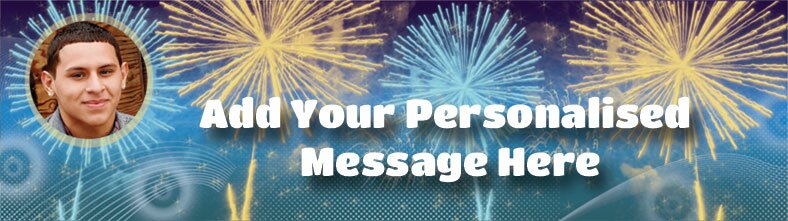 Fireworks and vibrant colours combine to make this stunning special occasion personalised birthday party banner. The stunning graphics make it ideal for Birthdays, Birthday parties, engagement parties, weddings, wedding parties, Civil ceremony, same sex weddings or any special occasion including anniversaries, Valentine's Day, new home, thank you, good luck, leaving, get well soon or just to say I Love You.