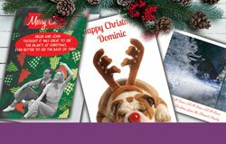 Here at Domandgeri.com we have a vast selection of Christmas Cards for you to choose from. Selecting one couldn't be simpler and many have photo uploadoptions so that you can make your Card as personal as you want it. We definitely have a design style to suit the most demanding of tastes, from cartoons and funny images to the more traditional Christmas scenes. Whether it's Mum, Dad, Granny or your favourite friend, you can be sure you will find a unique Customised Christmas Card at DomandGeri.com. What makes us different is that we can offer matching personalised Christmas Wrapping Paper too. Once you have chosen your card, why not buy a Gift Wrap with the same personalised design to really make a lasting impression! Each card is produced in our in-house hi-tech production facility, ensuring a high level of quality and personalisation. Make sure you order by 2pm and you will receive everything the next day.
